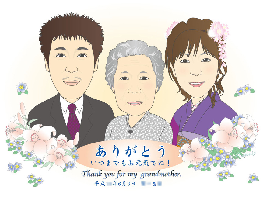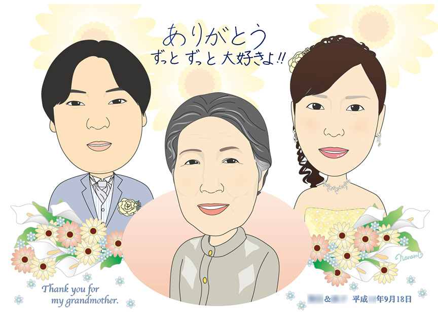 祖母と新郎新婦 手書きメッセージ